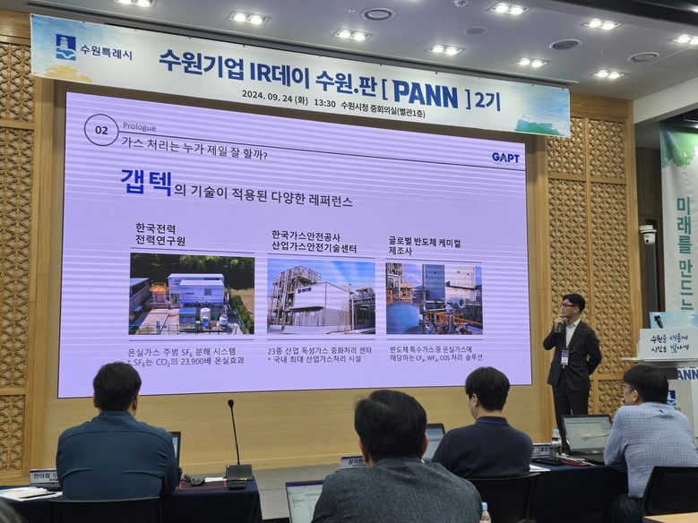신생 기업인 ㈜갭텍은 권선구에서 지난 2022년 설립 이후 3년여만에 새빛펀드의 투자로 기술 검증 기회와 업계의 관심을 동시에 얻을 수 있었다. 이산화탄소 포집 기술 특허 등을 기반으로 온실가스 저감 솔루션을 제공하는 ㈜갭텍은 지난해 9월 수원시가 마련한 기업IR데이 2기에 참여해 대상을 받아 투자자들에게 이름을 알리기 시작했다. 이후 투자의 물꼬를 튼 이 기업은 지난 5월 새빛펀드로부터 10억원의 투자를 받아 기술 상용화를 위한 유용한 자금을 마련할 수 있었다.