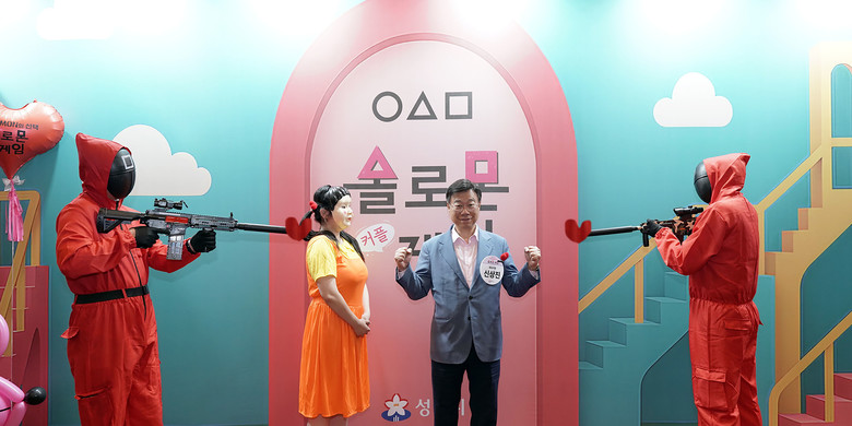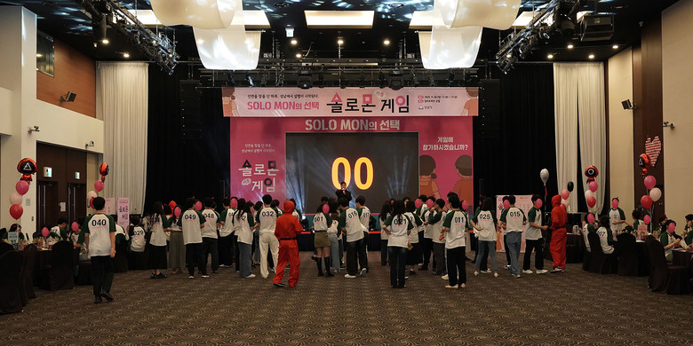 이번 행사는 넷플릭스 드라마 ‘오징어 게임’을 패러디한 ‘솔로몬 게임’ 주제로 열려 눈길을 끌었다.