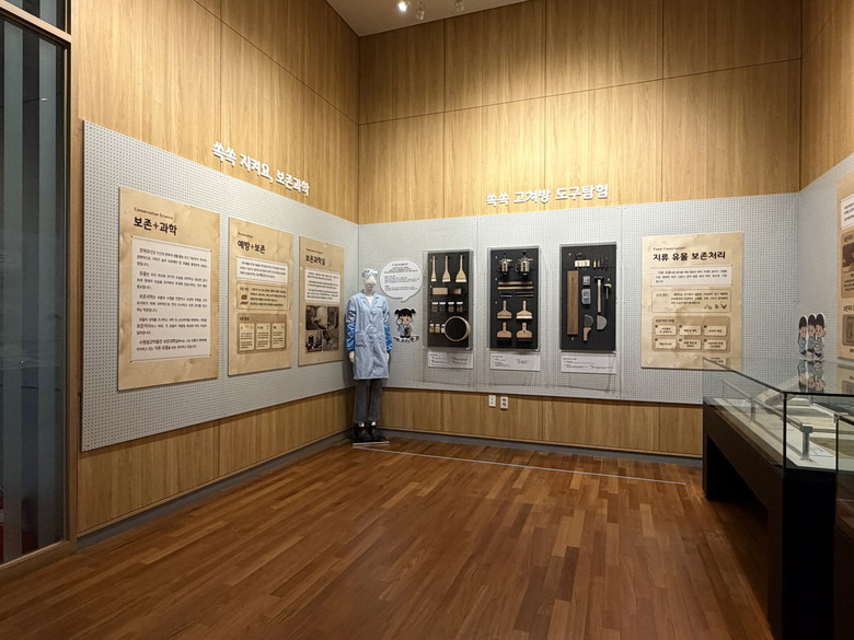보존 과학자의 역할과 지류 유물 보존 처리 과정을 단계적으로 보여주는 전시다. 관람객이 보존과학 개념과 필요한 도구·재료·복원 절차를 쉽게 이해하도록 구성했다.