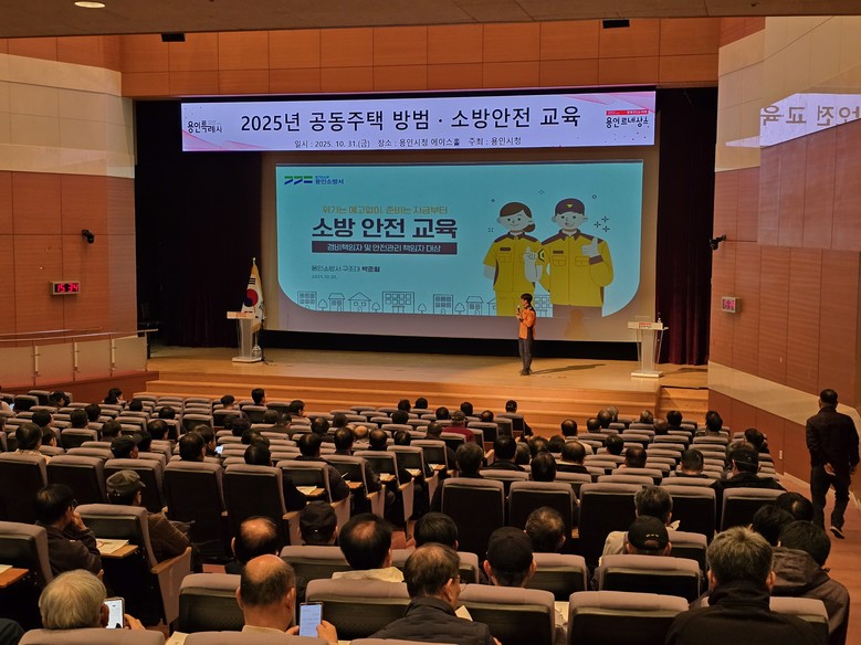 [용인시 세계타임즈=송민수 기자] 용인특례시(시장 이상일)는 10월 31일 시청 에이스홀에서 지역 내 의무관리 대상 공동주택 471곳의 경비책임자와 시설물 안전관리책임자를 대상으로 방범·소방 안전교육을 실시했다고 4일 밝혔다.