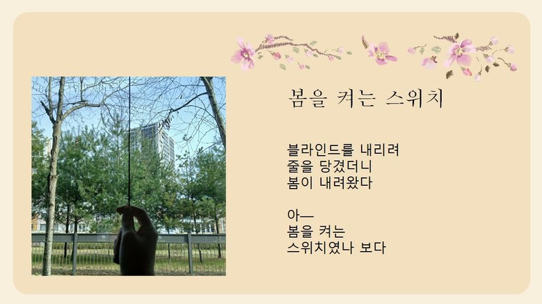 2학년 한예준 학생은“바쁘게 지내며 무심코 지나쳤던 학교의 모습들을 바라보고, 그 속에서 의미를 찾아가는 경험이 새로웠다”라며, “같은 풍경을 보더라도 사람마다 느끼는 감정과 표현이 다르다는 점에서 감상하는 재미도 컸다”라고 소감을 밝혔다.