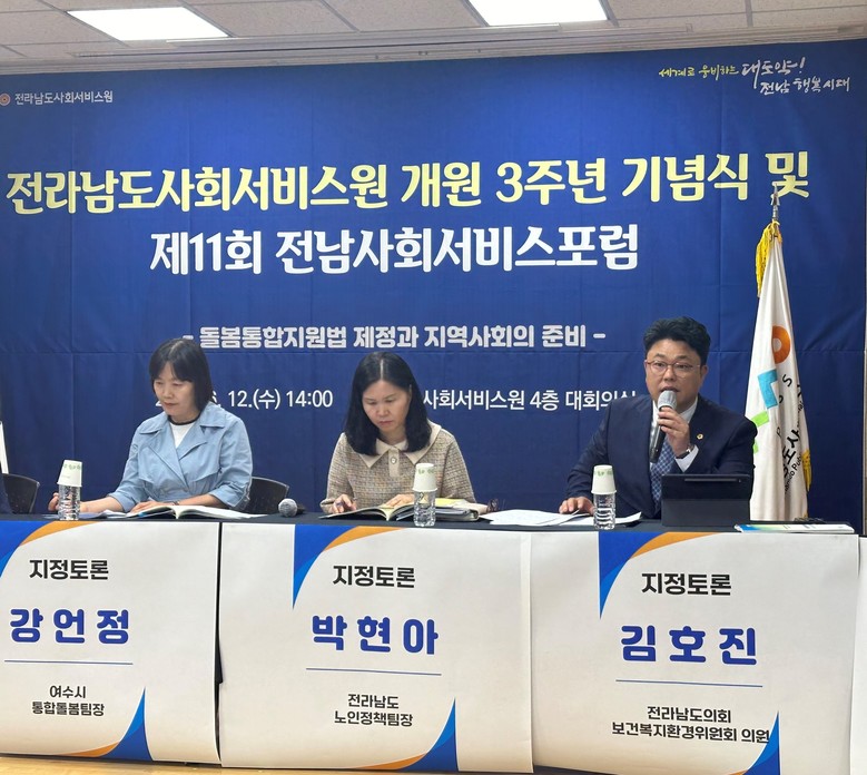 [전남 세계타임즈=우덕현 기자] 전라남도의회 김호진 의원(더불어민주당·나주1)은 지난 6월 12일 전라남도사회서비스원에서 ‘돌봄통합지원법 제정과 지역사회의 준비’라는 주제로 열린 제11회 전남사회서비스 포럼에 참석했다.