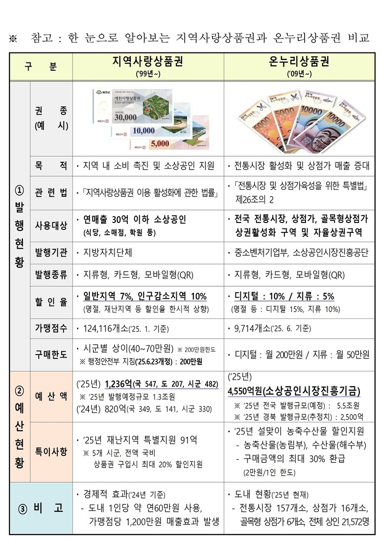 또한 시군별로 농어민수당, 고향사랑기부제 답례품, 전입지원금 등 각종 정책사업으로 지역사랑상품권을 발행하는 등 지역상권 회복에 적극적으로 대응하고 있다.