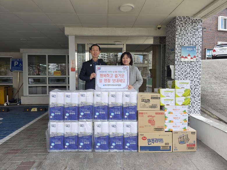 [대구 세계타임즈=한윤석 기자] 대구서부교육지원청(교육장 김규은)은 설 명절을 맞아 1월 30일 오후 3시, 사회복지시설 희망의집(북구 산격동)을 방문해 생필품과 간식 등을 전달하고 원아들과 시설 종사자들에게 격려한다고 밝혔다.
