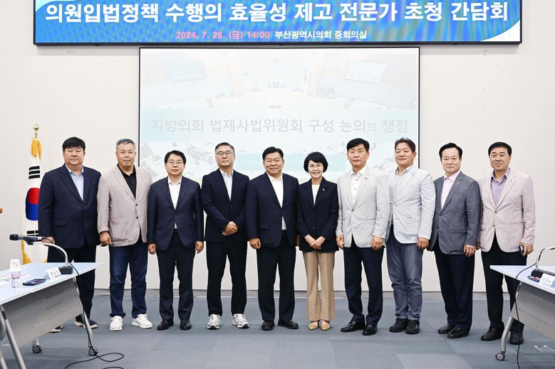 [부산 세계타임즈=이용우 기자] 부산광역시의회(운영위원장 강철호)는 7월 26일 중회의실(2층)에서 의원입법 정책 수행의 효율성 제고를 위한 전문가 초청간담회를 개최했다.