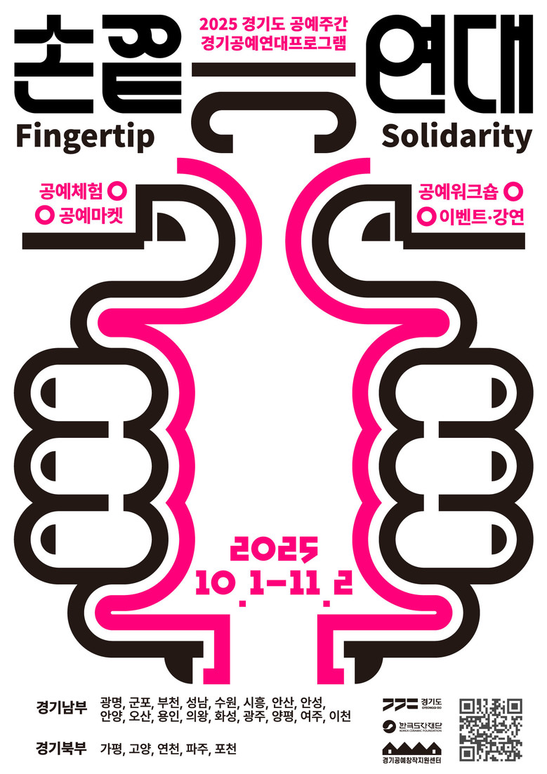 개막 프로그램인 ‘손끝연대’는 도내 공예인들이 지역과 장르를 넘어 하나의 네트워크로 모이는 프로그램이다. 총 22개 시군 175명의 공예인이 참여해 개별 공방에서 전시·체험·교육 프로그램을 운영하고, 도민이 일상에서 공예를 경험할 수 있도록 다양한 홍보 활동도 병행한다. 특히 흩어져 활동하던 공예인들을 연결해 공동의 비전을 공유하고, 장기적으로 경기도 전체 공예 생태계 강화를 모색한다는 점에서 의미가 크다.