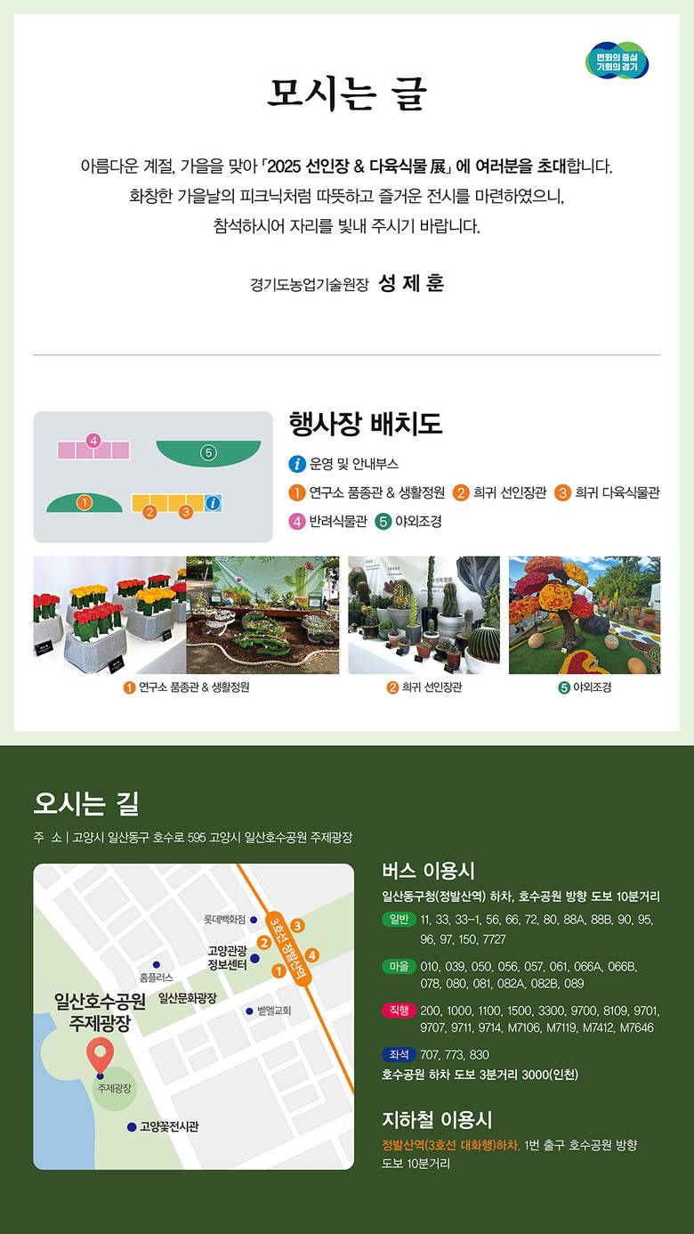 성제훈 경기도농업기술원장은 “오랫동안 선인장과 다육식물 연구에 힘써온 성과를 도민 여러분께 소개하는 자리”라며 “전시를 통해 반려식물의 매력을 널리 알리겠다”고 말했다.