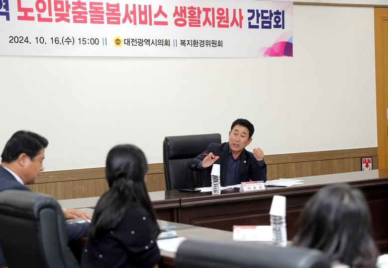 좌장을 맡은 이효성 복지환경위원장(국민의힘, 대덕구 제1선거구)은 “생활지원사는 일상생활 영위가 어려운 취약노인에게 필요한 돌봄서비스를 제공하는 핵심 돌봄 수행 인력”이라며, “그럼에도 일반 시민들의 인지도가 낮아 이 자리를 통해 고충사항을 듣고 일하기 좋은 근무환경을 조성하는 방안을 모색하고자 한다”고 간담회를 마련한 취지를 밝혔다.