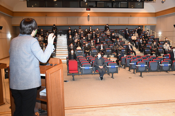 이번 특강은 2050 탄소중립을 선언한 한국사회의 직면한 과제를 살펴보고 광주의 그린뉴딜을 방향을 모색하기 위해 마련됐으며, 광주시‧자치구‧교육청 간부 공직자들과 공사공단 및 출자출연기관의 임직원이 참석했다.