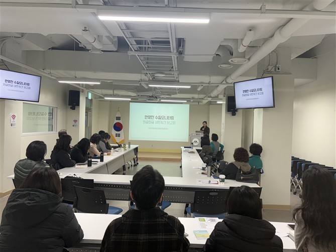 [안양시 세계타임즈=송민수 기자] 안양시공익활동지원센터(이하 센터)는 지난 25일 오전 10시 30분, 센터 대회의실에서 ‘안양천와글와글네트워크 보고회’를 개최했다. 이는 안양천에서 10여 년 이상 모니터링을 지속해 온 공익단체들의 네트워킹을 촉진하는 ‘공익네트워크생기발랄’프로젝트의 일환으로 마련됐다. 안양천 현장에서 활동을 이어 온 주요 단체들과 안양시의 하천 및 환경정책 관련 부서 관계자도 참여했다.