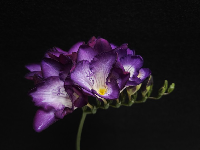 딥보라문은 깊고 선명한 보라색 홑꽃의 프리지아로, 강한 향기와 생생한 화색이 특징이다.