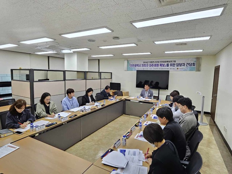 인천시의회 인천재원확보연구회(대표의원 신동섭)는 최근 의회 행정안전위원회 세미나실에서 신동섭 대표의원을 비롯해 인천시 재정담당자, 8개 자치구 관계자 등 10여 명이 참석한 가운데 ‘자치구 자주재원 확보를 위한 담당자 간담회’를 개최했다고 8일 밝혔다.