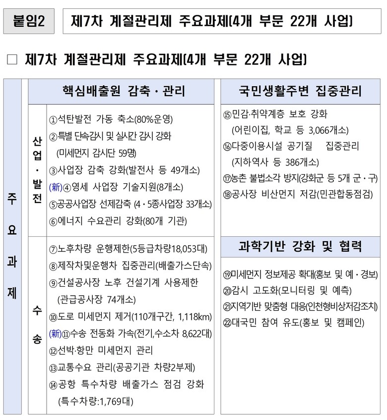 미세먼지 계절관리제는 초미세먼지(PM-2.5) 농도가 급증하는 12월부터 내년 3월까지 평상시보다 강화된 배출 저감 조치를 시행하는 제도로, 2019년부터 전국적으로 운영되고 있다.