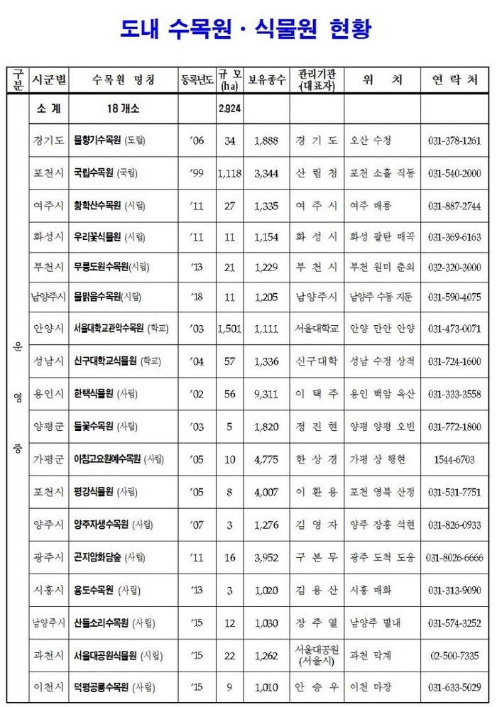 가평군 상면에 소재한 ‘아침고요수목원’은 희귀식물 및 자생 식물 1000여 종 등 식물유전자원 총 5000여 종의 식물을 보존, 증식 및 전시하고 있으며, 고향집정원, 하경정원, 한국정원 등 다양한 주제의 ‘테마정원’들이 구성되어 있다.