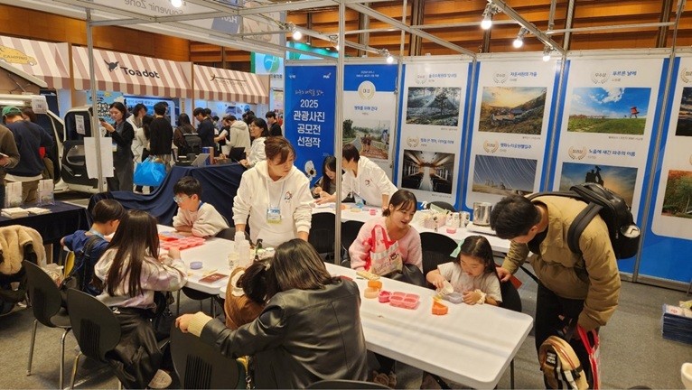 홍보관 벽면에는 ‘2025년 파주시 관광사진 공모전’ 수상작 전시 공간으로 꾸며져, 관람객들이 파주의 아름다운 자연과 관광지를 한눈에 감상할 수 있도록 했다.