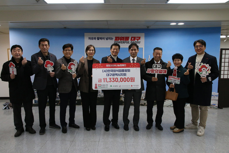 [대구 세계타임즈=한윤석 기자] (사)한국외식업중앙회 대구광역시지회(지회장 박오규)는 ‘따뜻한 새해맞이’ 나눔 활동의 일환으로 대구사회복지공동모금회에 이웃돕기 성금 1,133만 원을 전달했다.