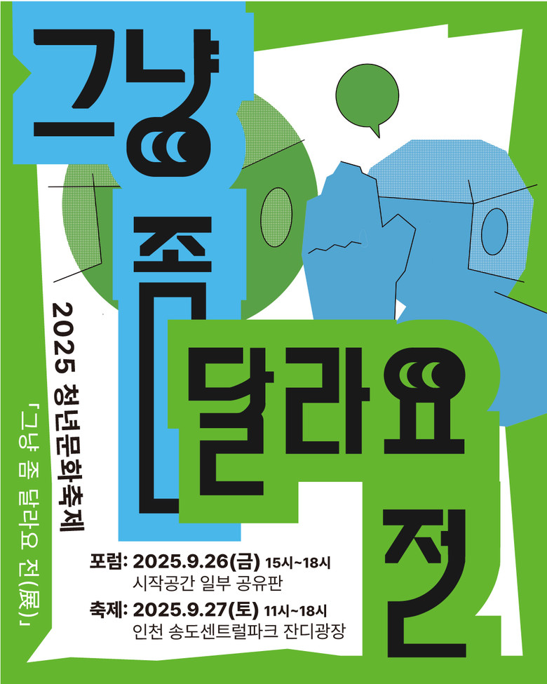 포럼 다음날 진행되는 ‘2025 청년문화축제 「그냥 좀 달라요, 전(展)」’에서는 인천 청년 단체 부스, 공연, 각종 체험 프로그램 및 플리마켓 등 다채로운 콘텐츠가 동시에 펼쳐지며, 축제명 ‘그냥 좀 달라요, 전’과 같이 청년만의 독창적인 감각과 에너지를 느낄 수 있는 프로그램을 준비했다.