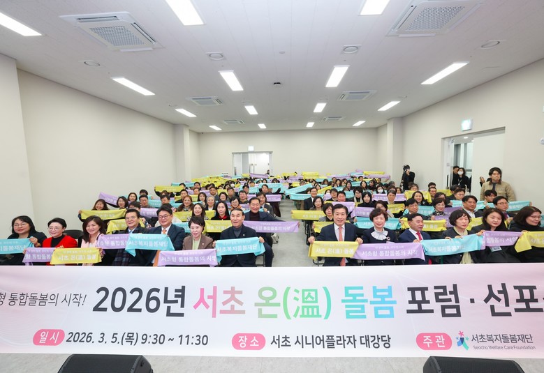 [서초구 세계타임즈=이장성 기자] 서울 서초구(구청장 전성수)는 서초형 통합돌봄 사업의 본격 추진을 대내외에 알리기 위해 5일, 서초복지돌봄재단 주관으로 ‘서초구 통합돌봄 포럼 및 선포식’을 개최했다고 밝혔다.