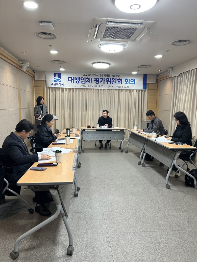 [수원시 세계타임즈=송민수 기자] 수원특례시(시장 이재준)가 25일 시청 소회의실에서 2025년 생활폐기물 수집·운반 대행업체 평가위원회를 개최하고, 2025년 종합평가 결과를 심의·의결했다. 13개 업체에 대한 종합평가 결과 ‘탁월’ 수준인 것으로 나타났다.
