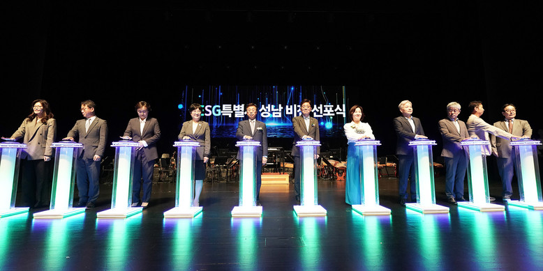 이런 내용의 ESG 비전·전략·추진 과제는 신상진 성남시장과 양옥경 성남시 ESG활성화위원회 위원장, 국회의원, 시의원, 기업·유관기관 단체장 등 12명이 무대에 올라 비전 선포 버튼을 눌러 관련 영상을 송출하는 방식으로 공개됐다.