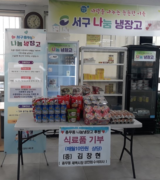 [서구 세계타임즈=이용우 기자] 부산 서구 김창현(충무동 새벽시장 상인회 수석이사) 님은 지난 8일 나눔 냉장고에 고등어통조림 등 식료품(10만 원 상당)을 보내와 올해 들어 5번째 기부를 실천하였다.