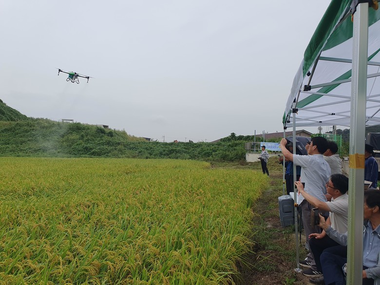 시연회에서는 드론방제기의 안전한 사용을 위한 교육과 함께 비산저감형 AI 노즐 드론방제기를 활용한 정밀 살포기술을 현장에서 선보였다. 참가한 농업인들은 높은 관심을 보이며 호응했다.