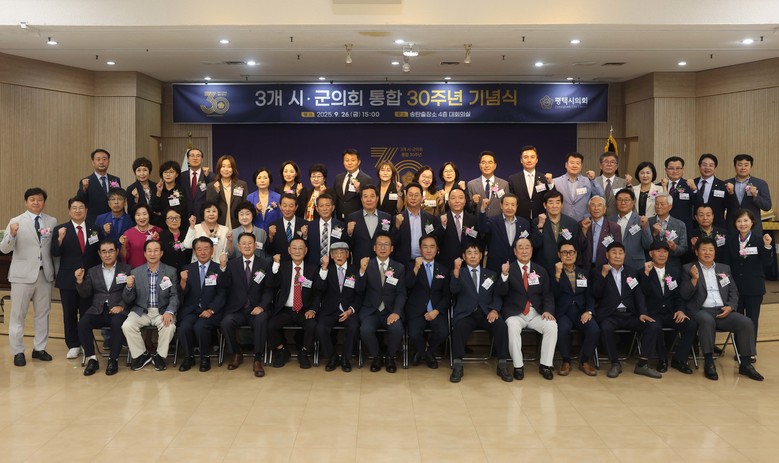 [평택시 세계타임즈=송민수 기자] 평택시의회(의장 강정구)는 26일, 송탄출장소 4층 대회의실에서 ‘3개 시·군의회의 통합 30주년 기념행사’를 개최해 지난 30년간의 발자취를 돌아보며 지방의회 상생과 발전방향을 모색하는 뜻 깊은 시간을 가졌다.