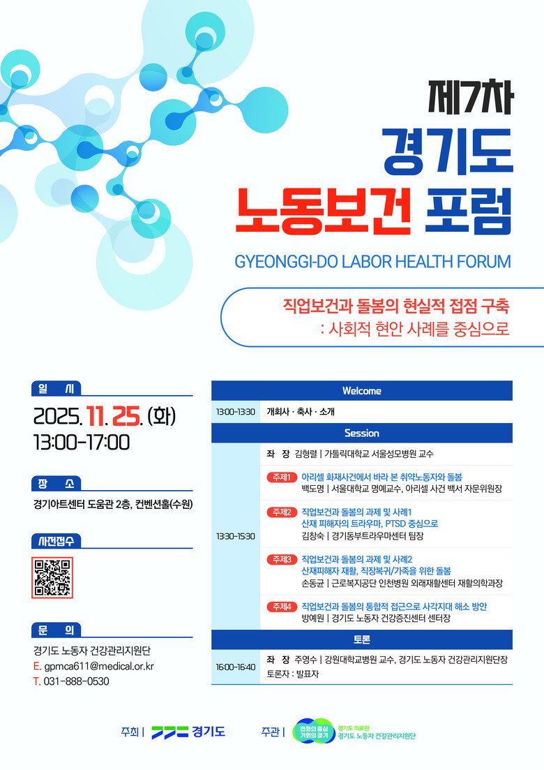 | ▲제7차 경기도 노동보건포럼 포스터.(사진=경기도의료원 수원병원) |
