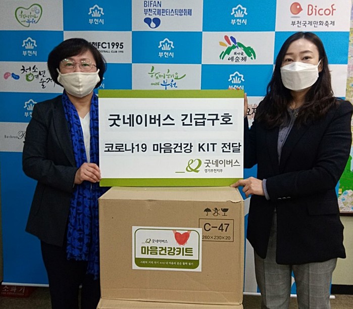 코로나19 바이러스 확산으로 유치원과 초등학교의 개학이 연기되면서 복지 사각지대에 놓여있는 저소득가정 아동의 감염병 스트레스가 우려되는 상황이다. 이날 전달된 물품은 아동과 보호자가 가정에서 심리적 안정감을 회복할 수 있도록 돕는 만다라 컬러링북, 점토놀이, 보드게임, 키트 사용안내서가 포함된 마음건강키트 20개다. 굿네이버스 경기부천지부는 드림스타트를 비롯하여 부천 지역 내 코로나19 확산으로 어려움을 겪고 있는 취약계층 및 저소득 총 25가정에 마음건강키트를 지원한다.