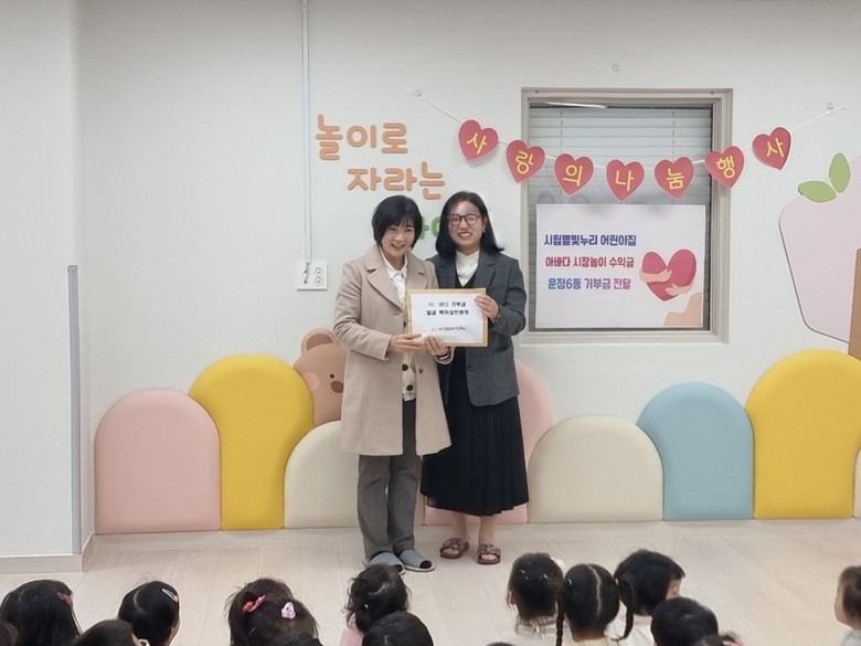 기부에 참여한 어린이집 관계자는 “학부모들의 따뜻한 마음과 원아들의 고사리손으로 모은 소중한 기부금이 지역사회 어려운 분들에게 전해졌으면 좋겠다”라고 말했다.