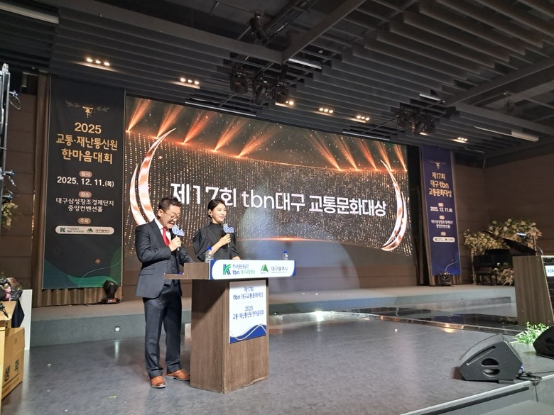 ▸ 대상 1명(최고점), 본상 3명(친절버스·교통문화·교통정책) 선정 [대구 세계타임즈=한윤석 기자] 대구광역시는 한국도로교통공단 TBN대구교통방송과 함께 올 한 해 지역 교통문화 발전에 기여한 지역민과 단체를 격려하기 위해 12월 11일(목) 오전 11시, 삼성창조경제단지 중앙컨벤션홀에서 ‘제17회 TBN대구교통문화상’ 시상식을 개최했다.