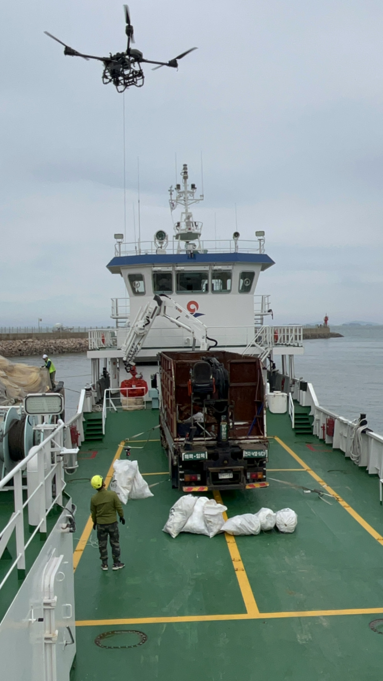 드론 운반을 통해 300kg 규모의 해양쓰레기를 안전하게 선박으로 옮겨 해안쓰레기 수거 효율을 높이고 해상작업의 안전성을 강화할 수 있을 것으로 기대된다.