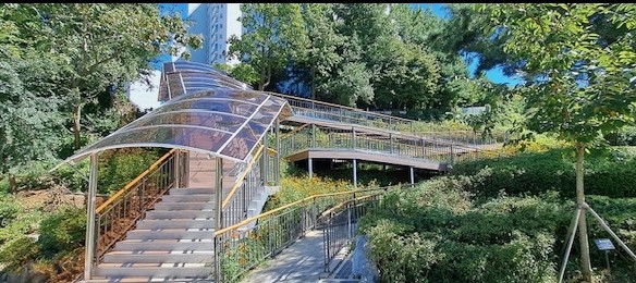 진입로엔 보행 안전을 위해 차양막, 경관등 등을 추가했고, 유모차와 휠체어도 이동할 수 있도록 이동경사로를 설치했다.