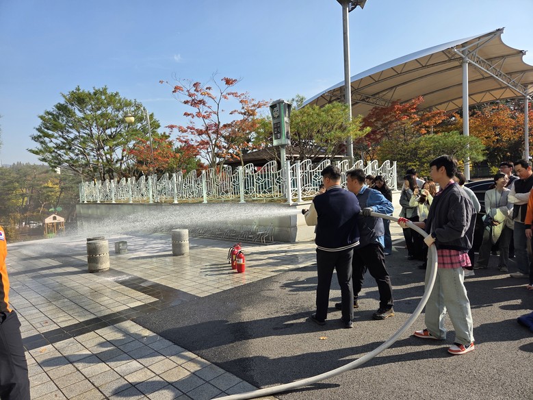 훈련은 청사 화재 상황을 가정해 청사 내 직원과 방문객 대피 훈련, 화재 초기 진압 훈련, 소화기와 소화전 사용 교육과 실습 등으로 진행됐다.