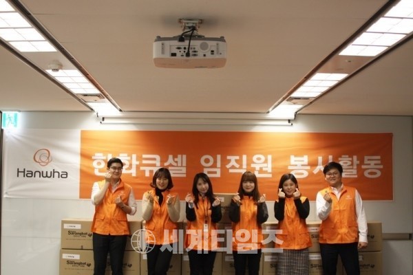 한화큐셀 본사에서 진행된 나눔 활동에서 임직원들은 쌀 10kg와 반찬 6종, 국 2종을 포장하여 인근 저소득층 가정 25가구에게 전달했다. 쌀과 반찬을 전달 받은 이웃들은 서로 명절 맞이 덕담을 주고 받았다.