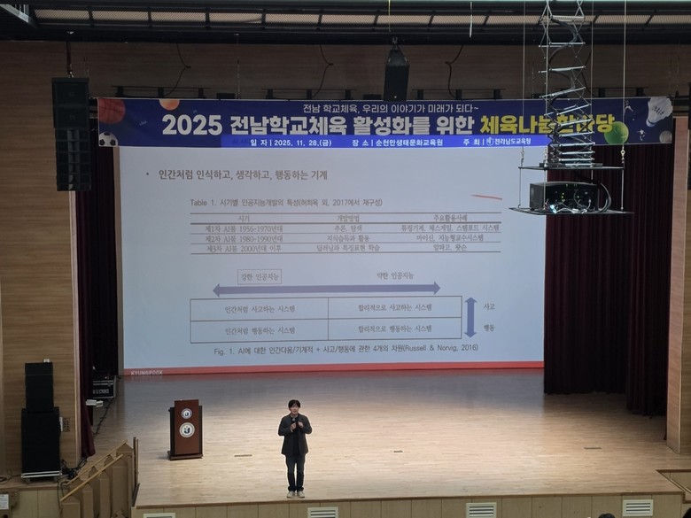 이날 한마당 행사에서는 교육연극 ‘선생님이 좋아서요’와 경북대학교 이규일 교수의 특강 ‘인공지능(AI) 시대 학교체육의 역할과 과제’가 이어져 교사들의 전문성과 미래교육 역량을 높이는 시간도 마련됐다.
