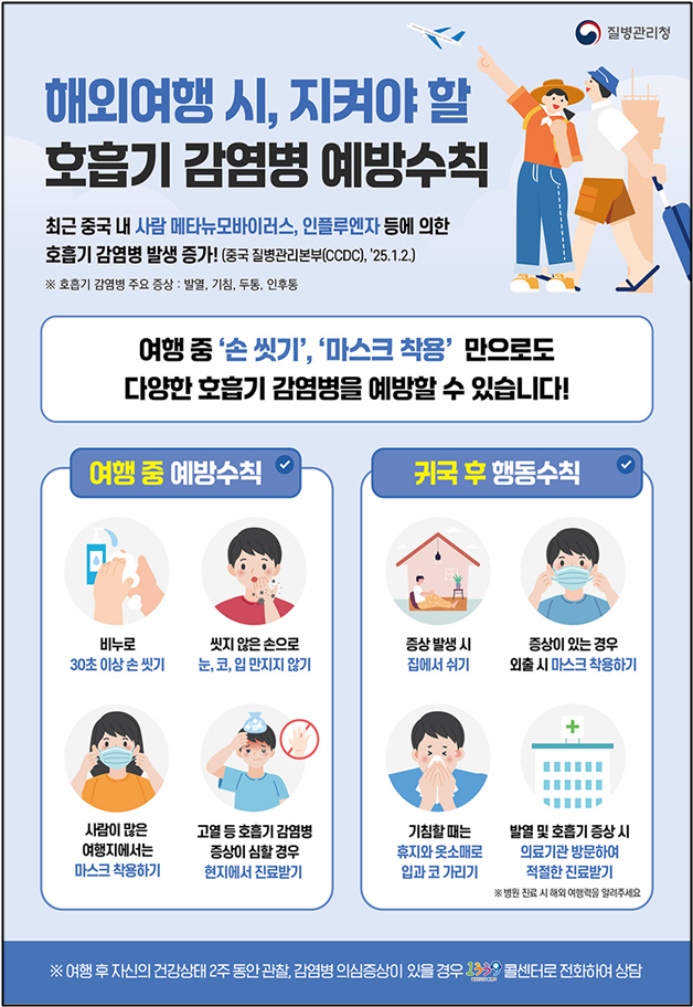 해외여행 후 입국하는 시민들을 위한 검역 지원도 강화된다. 2026년 2월 10일부터 전국 13개 공항·항만 검역소에서「여행자 호흡기 감염병 검사 서비스」를 확대 시행 중이다.