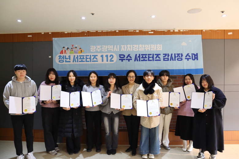 [광주 세계타임즈=손권일 기자] 광주광역시자치경찰위원회는 24일 시청 다목적홀에서 ‘청년 서포터즈 112’ 제7기 우수 서포터즈 10명에게 감사장을 수여하고 격려했다.