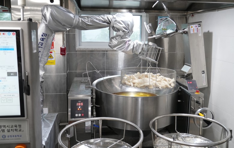 부산시교육청은 한국로봇산업진흥원이 주관하는‘2025년도 서비스로봇 실증사업’에 ㈜한국로보틱스와 컨소시엄으로 공동 참여해 지난 5월 최종과제로 선정됐으며, 국비 2억 5천만원을 지원받아 총 사업비 6억 7천만원으로 최근 금정초·남일고·부산체고 등 3개 학교에 전기솥과 로봇팔이 결합한 다기능 조리로봇을 설치했다.