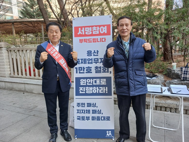 이번 2차 서명운동은 지난 3월 14일과 15일 이촌역 일대에서 진행된 1차 서명운동에 이어 마련된 후속 활동으로, 반대주민 대표 비상대책위원회 관계자와 자원봉사자들이 참여한 가운데 오전 11시부터 오후 5시까지 진행됐다. 이날 서명운동은 용산역과 이촌역 일대에서 진행되었으며 시민 의견 수렴 범위를 확대했다.