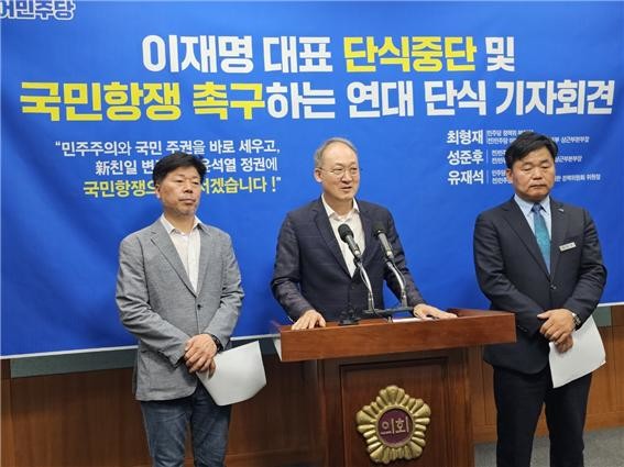 [세계타임즈 = 이채봉 기자] 더불어 민주당 유재석·최형재 민주당 정책위 부의장과 성준후 민주당 부대변인이 “윤석열 정권의 민주주의 유린과 의회정치 압제 중단”을 촉구하며 무기한 단식을 선언했다.
