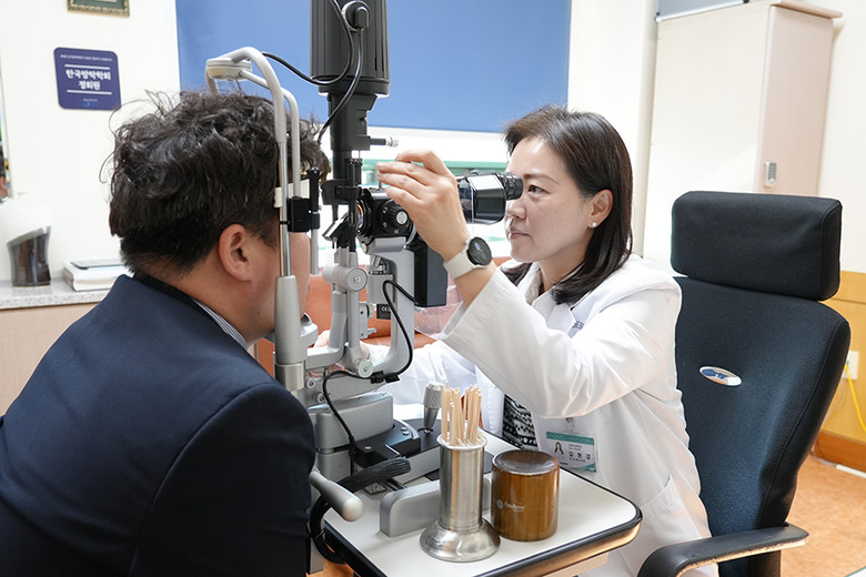 | ▲분당제생병원 안과 길현경 주임과장이 망막 질환 환자 진료를 하고 있다(사진=분당제생병원) |