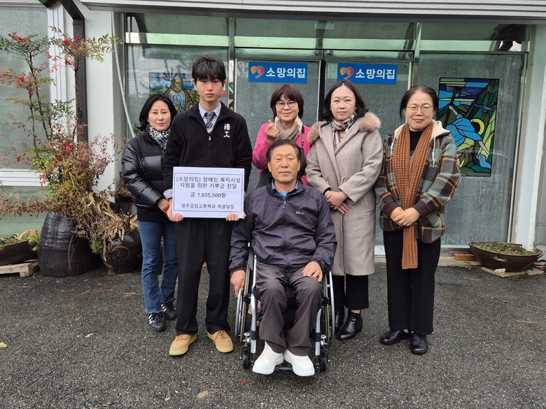 [충북 세계타임즈=이현진 기자] 청주공업고등학교(교장 김경희) 학생자치회 학생들은 11월 29일(금), 학부모회 회장단과 함께 현도 소망의 집을 방문하여 불우이웃돕기 성금 100만원을 전달하였다.