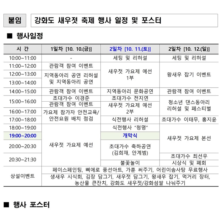 이번 축제는 국내 최대 새우젓 생산지인 강화도의 지역 특산물을 널리 알리고, 최근 위축된 우리 수산물 소비를 촉진하기 위해 마련됐다.