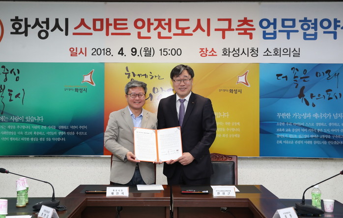 KT(회장 황창규, www.kt.com)와 화성시(시장 채인석, http://www.hscity.go.kr)는 지난 9일 화성시청 본관에서 ‘드론을 이용한 안심귀가 및 우범지역 감시를 위한 관제 시스템 구축 업무협약(MOU)’를 체결했다고 10일 밝혔다. 이날 행사에는 채인석 화성시장과 안상근 KT 수도권강남고객본부장 등 양측 관계자들이 참석했다.