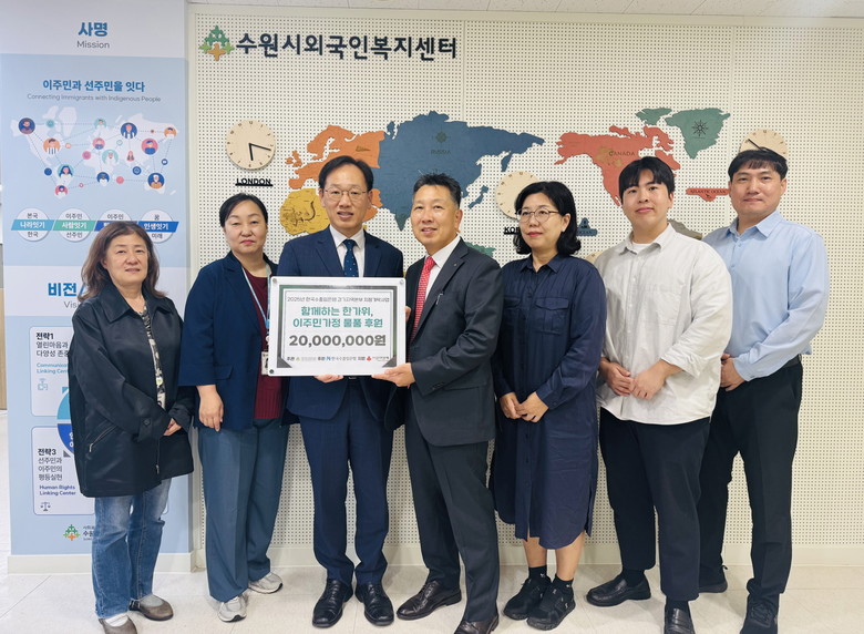 9월 30일 수원시외국인복지센터에서 열린 전달식에는 최정훈 한국수출입은행 경기지역본부장, 수원시 관계자 등이 참석했다.
