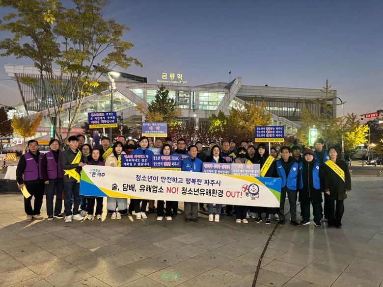 점검에는 파주시, 파주경찰서, 청소년유해환경감시단 3개 단체에서 30여 명이 참여했으며, ▲청소년 출입·고용 금지 업소 준수 여부 ▲주류·담배 판매 행위 단속 ▲불법 광고물 및 청소년 유해업소 표시 여부 등을 중점적으로 살폈다.