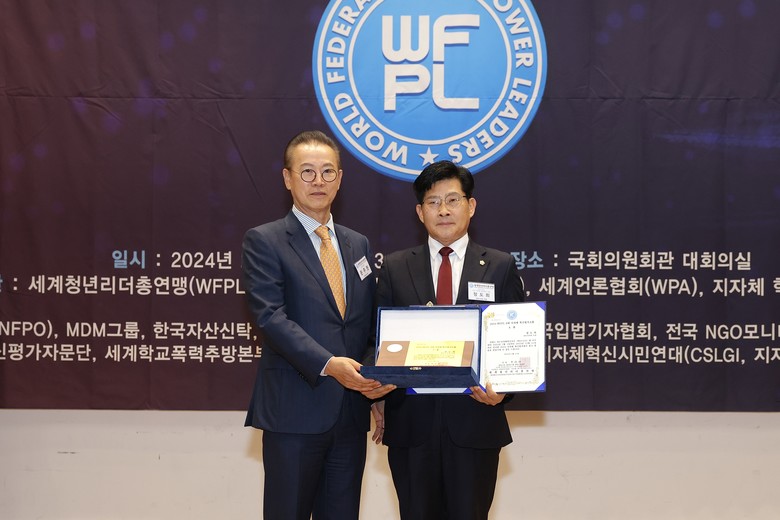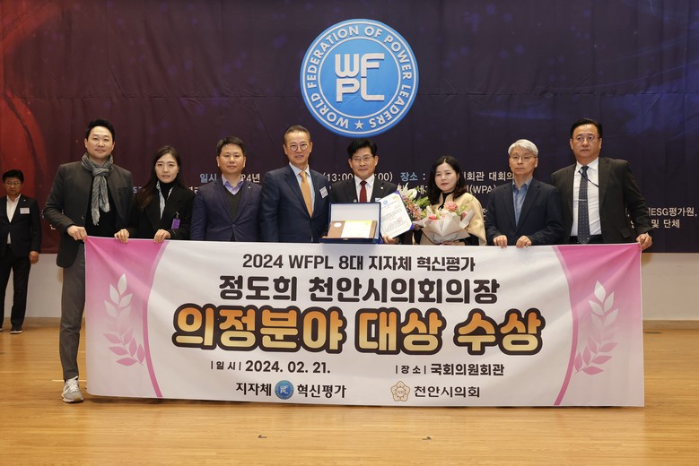 [천안시 세계타임즈=백택기 기자] 정도희 천안시의회 의장은 21일 국회의원회관 대회의실에서 세계청년리더총연맹(총재 이산하, WORLD FEDERATION OF POWER LEADERS, WFPL), 대한민국 국회(양정숙 국회의원), 국제ESG평가원, 세계언론협회(WPA), 국제소비자평가원 등과 공동으로 주최한 ‘2024 WFPL 8대 지자체 혁신평가’에서 의정분야 ‘대상’수상의 영예를 안았다.