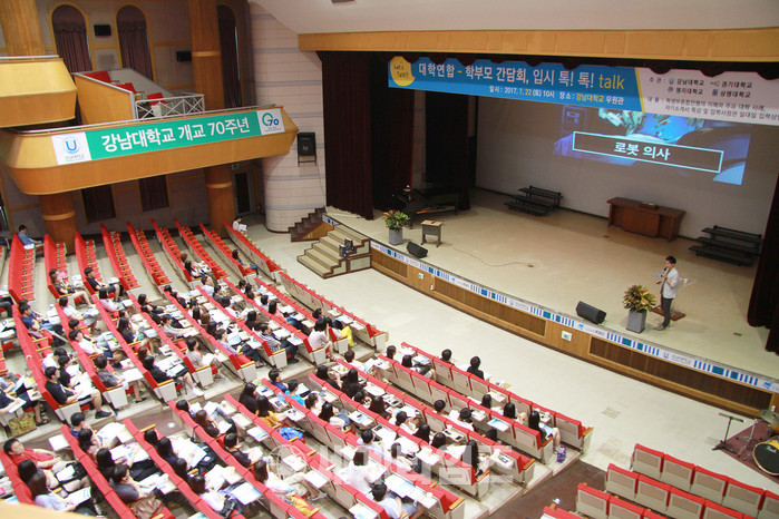 [경기도=세계타임즈 이영진 기자]강남대학교(총장 윤신일)는 지난 22일 강남대학교 우원관 대강당에서 ‘2017 대학연합 학부모 입시간담회, 입시 톡!톡!’을 개최했다.