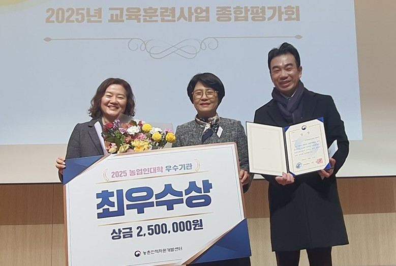 또한 농업인대학은 교육과정의 독창성과 국가 농업정책 연계, 청년.여성농업인 참여 확대 등 교육 운영의 내실을 인정받아 농업인대학 우수기관 최우수상에 선정됐으며, 지역 여건에 맞춘 맞춤형 교육을 통해 미래 농업 인재 양성의 핵심 거점 역할을 하고 있다.